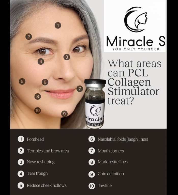 Miracle S is a preparation based on polycaprolactone (PCL) with a strong rejuvenating, lifting and anti-wrinkle effect. Also referred as a Liquid Face Lift, and just like Sculptra builds collagen after 4-6 weeks. (Time that it takes for a collagen cycle)